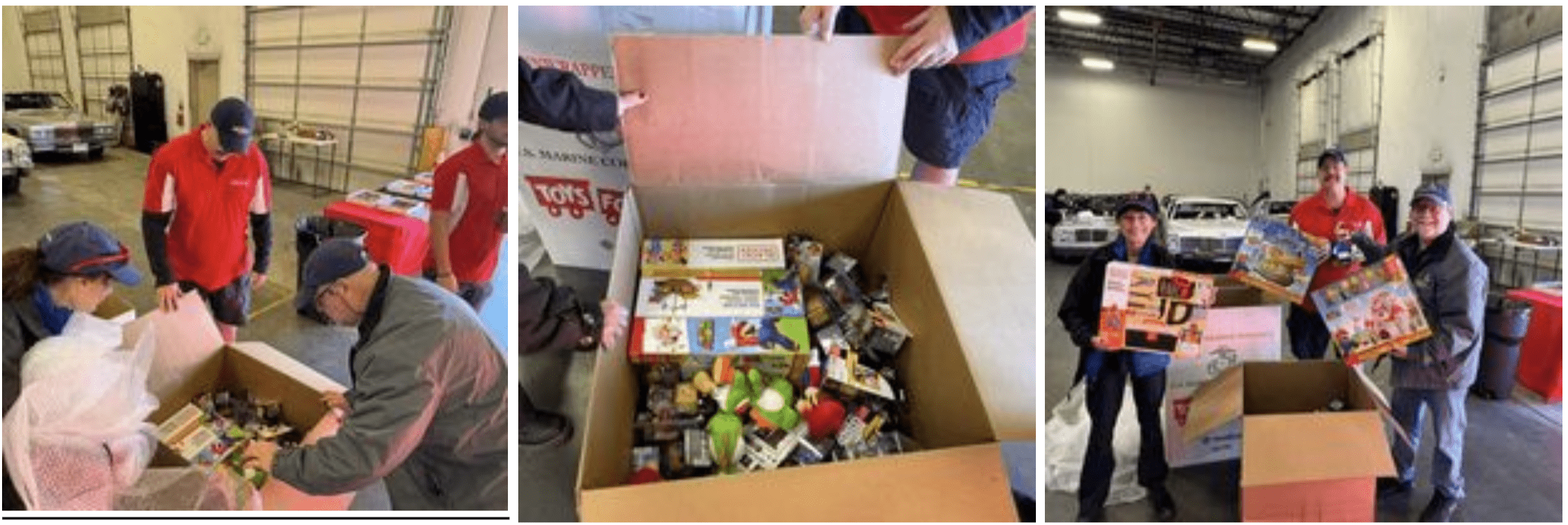 Pictures of Gateway Classic Cars Toys for Tots Collection 2023 courtesy of Cheryle Derman.